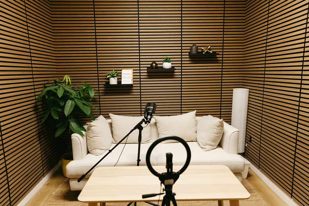 Our podcast studio operates as a flexible “bring your own equipment” space so you can record using the tools you’re most comfortable with.